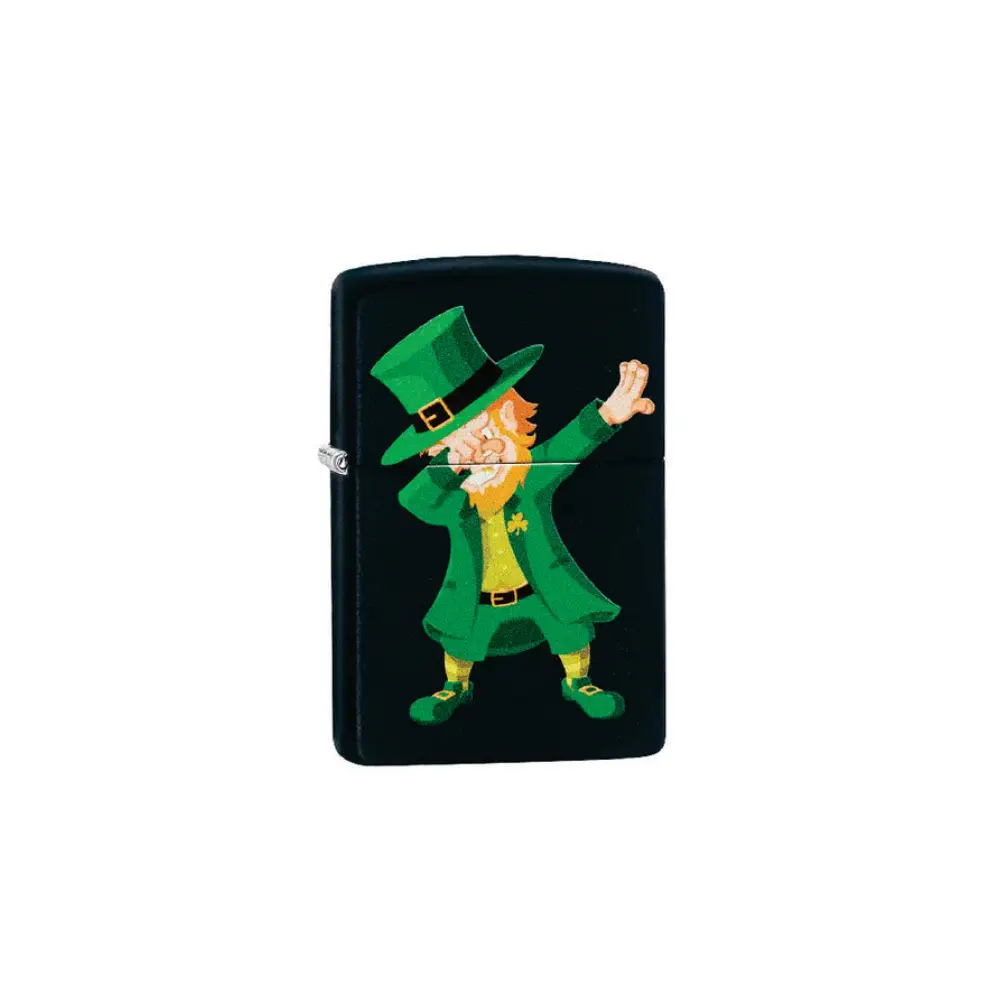 ¿Puedes atrapar al duendecillo dabbing? Este diseño representa a un duendecillo clásico del folclore irlandés que dabbing en un encendedor negro mate. ¡Consigue a este pequeño personaje de barba roja hoy mismo y consigue su tesoro escondido! Para un rendimiento óptimo, llénalo con gasolina para encendedores Zippo .